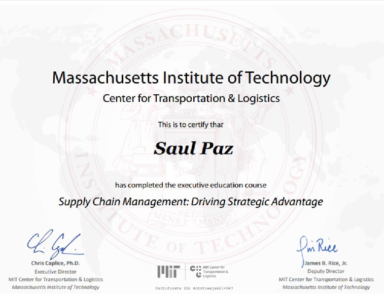 - Diplomado en Estrategias de Supply Chain del MIT